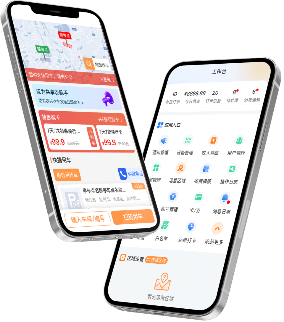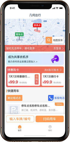 扫码用车、GPS、电子围栏、定点还车、禁停/禁行区