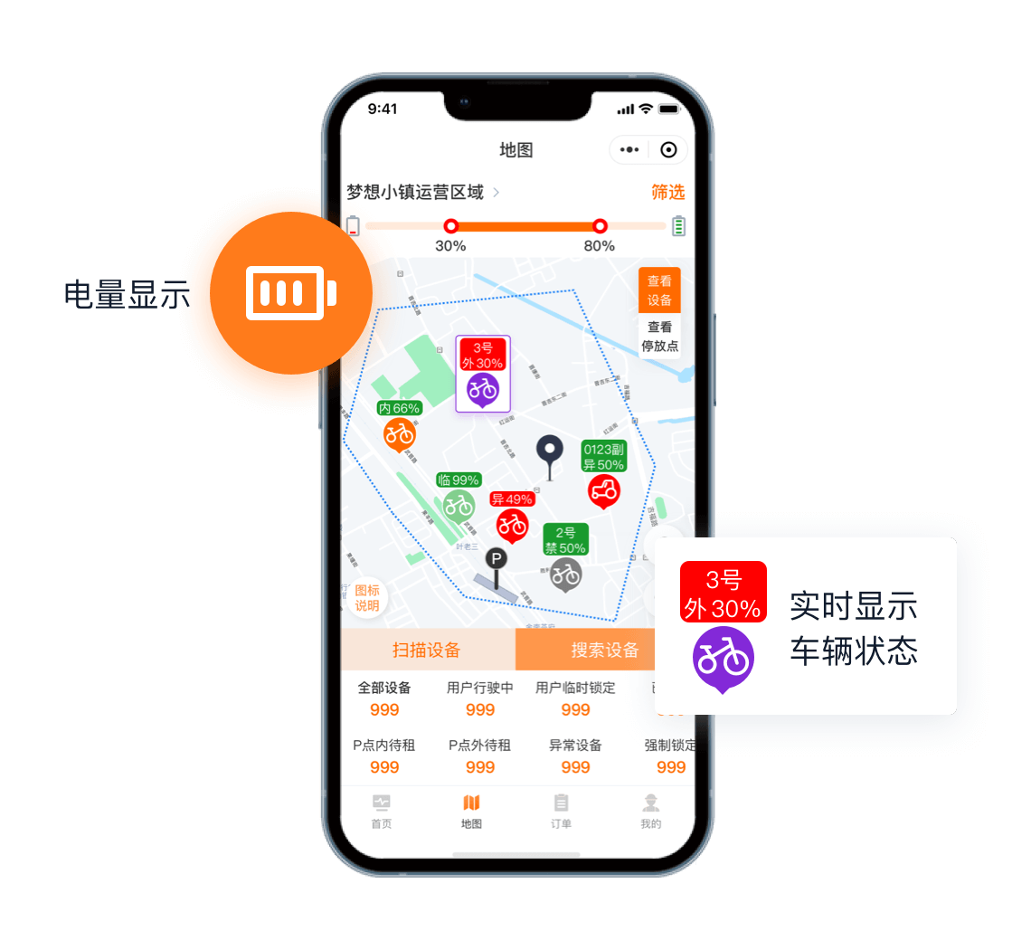 实时显示车辆电量、位置,调度员一键指派车辆至热门路线,减少调度人力和限制车辆。