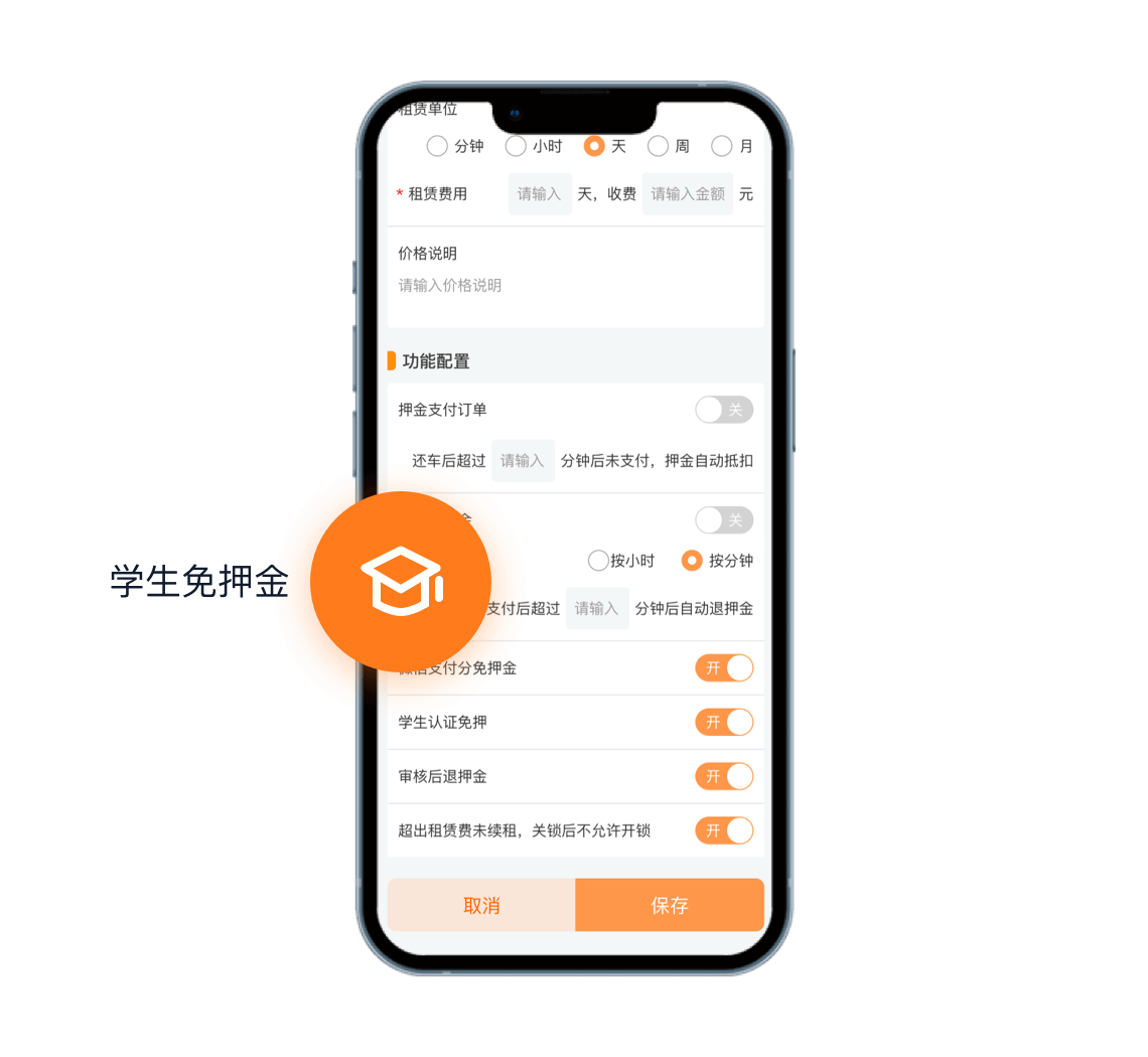 接入学生认证,成功认证免收押金费用,提高客户成单率。
