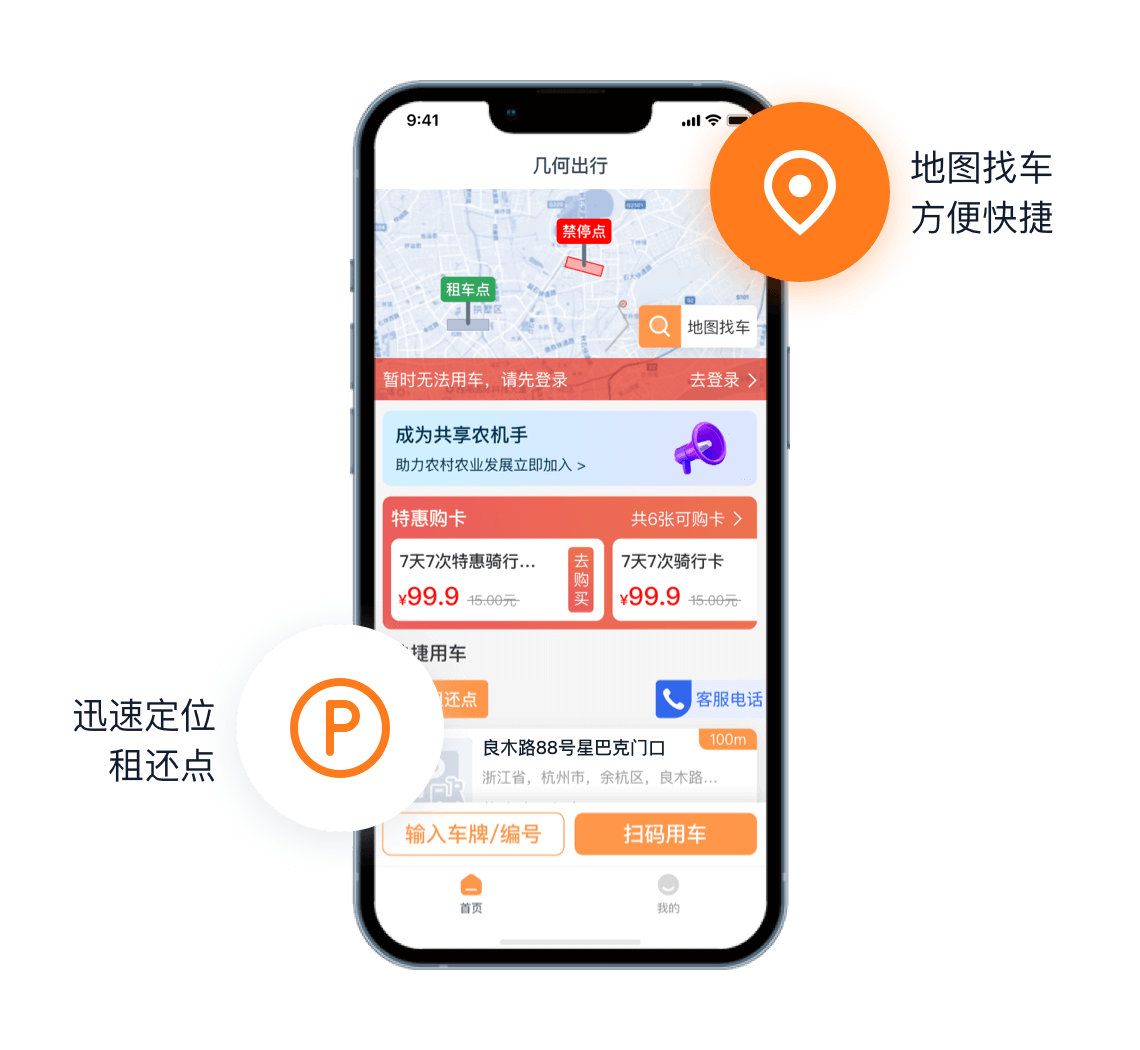 客户不清楚附近可用车和租还点,租车还车效率低,浪费人力