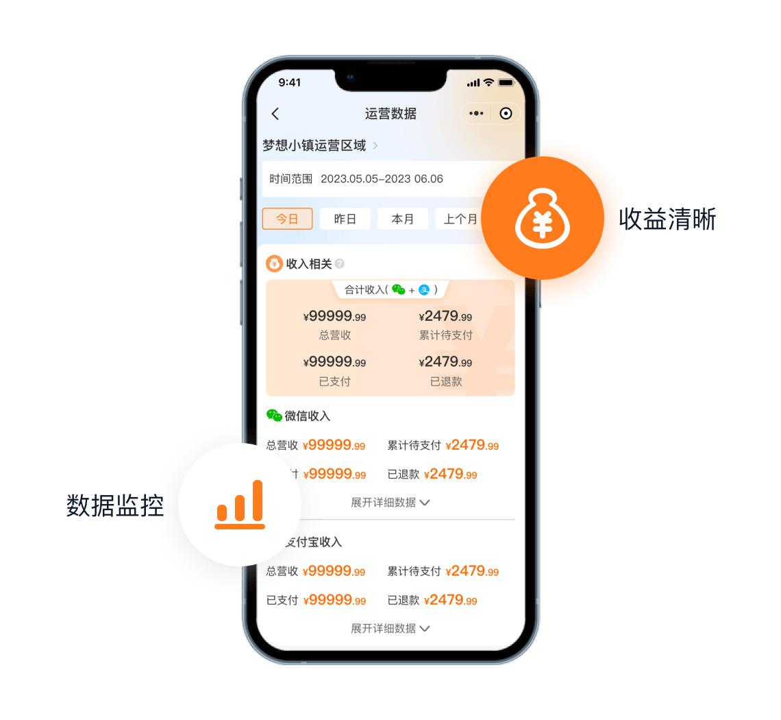 每笔订单收益清晰统计,可按不同区域查看营收对账,实现区域化管理。